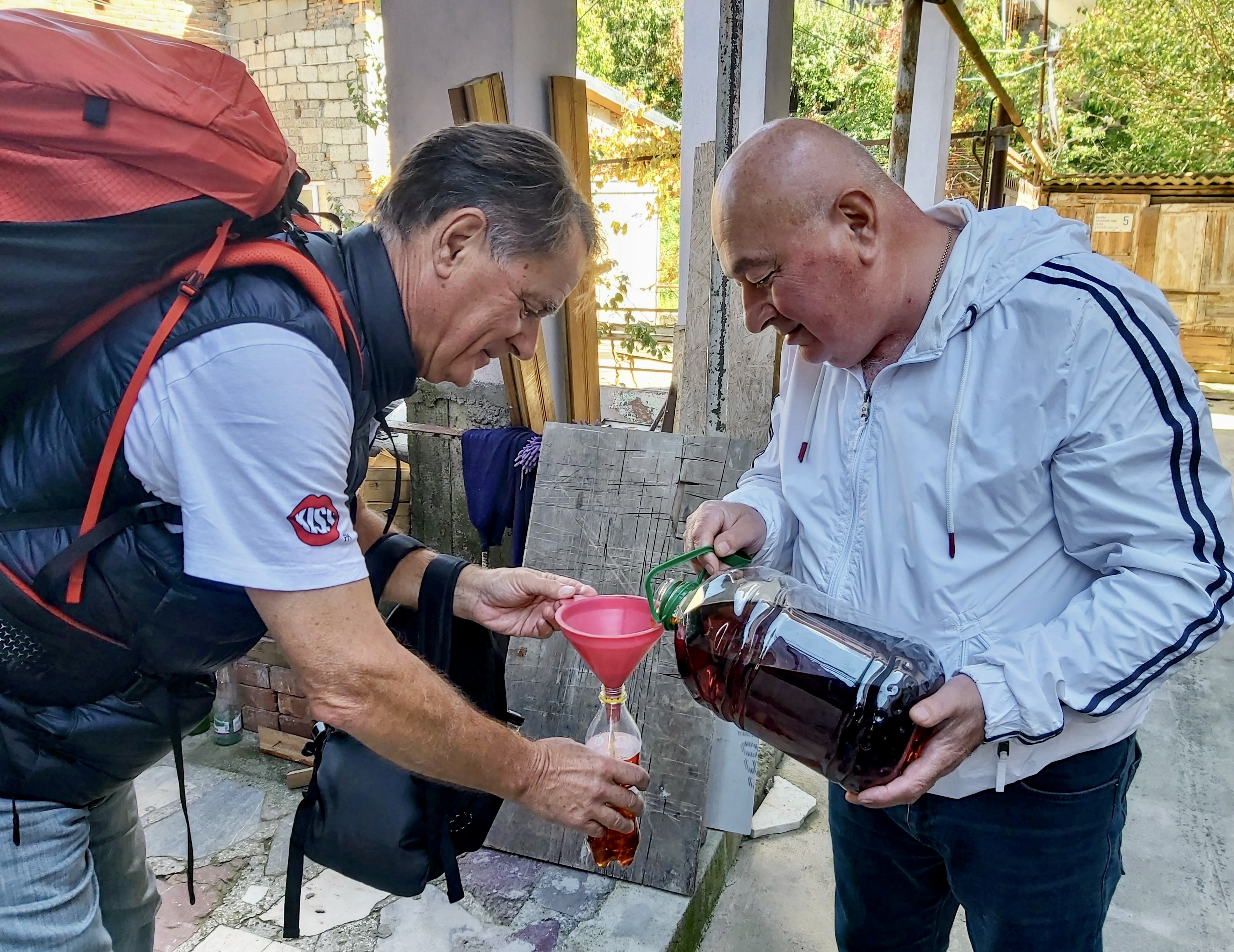 Rtvelin avslutades med festmåltid på våra khinkali, mtsvadi (BBQ-kött på spett), färskost, såser, bröd, aubergine och en massa historier om och från Georgien och Sverige. Naturligtvis provade vi Iraklis vita, röda och söta viner och även hans hembrygda chacha, som är namnet på georgisk grappa. Morgonen blev till dag som blev till eftermiddag och sen kväll, och ett fint minne för livet.