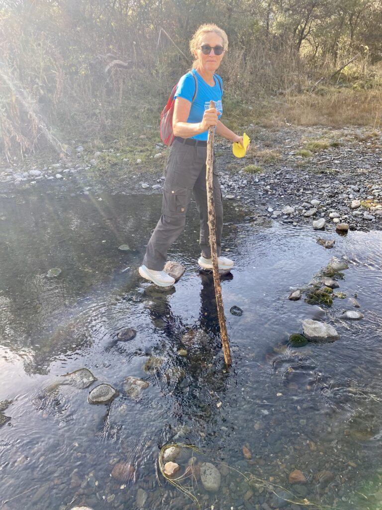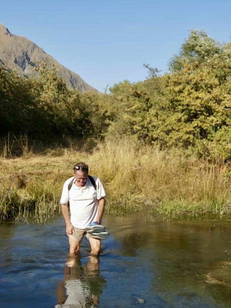 Jaja, bara att kliva ur skorna och vada på. Efter hundra meter, ännu en bäck!