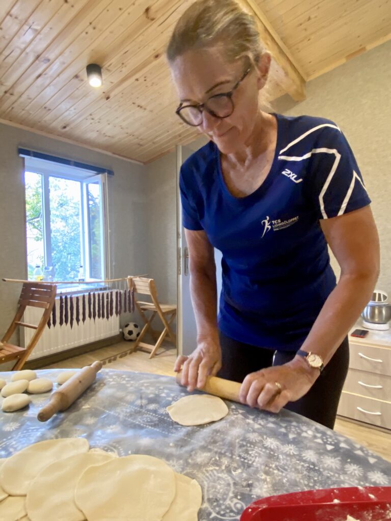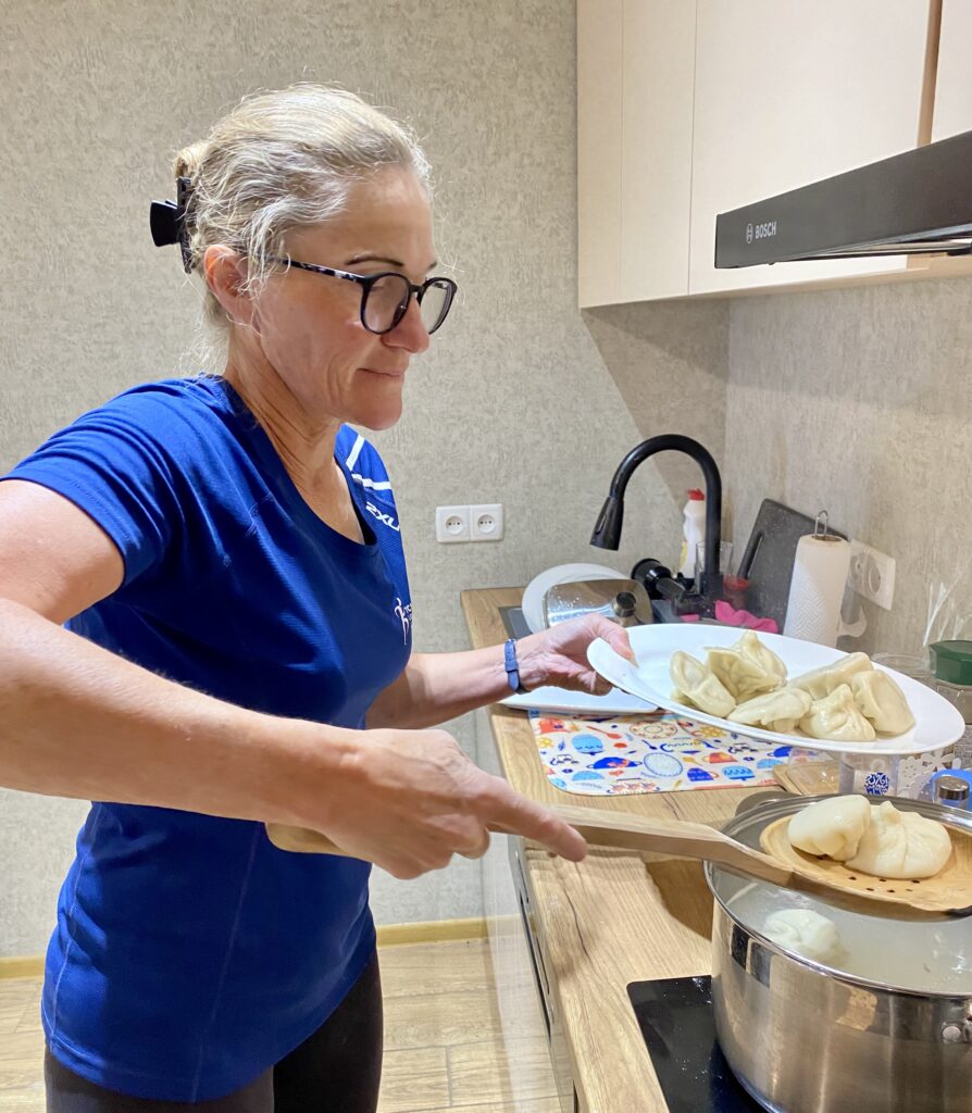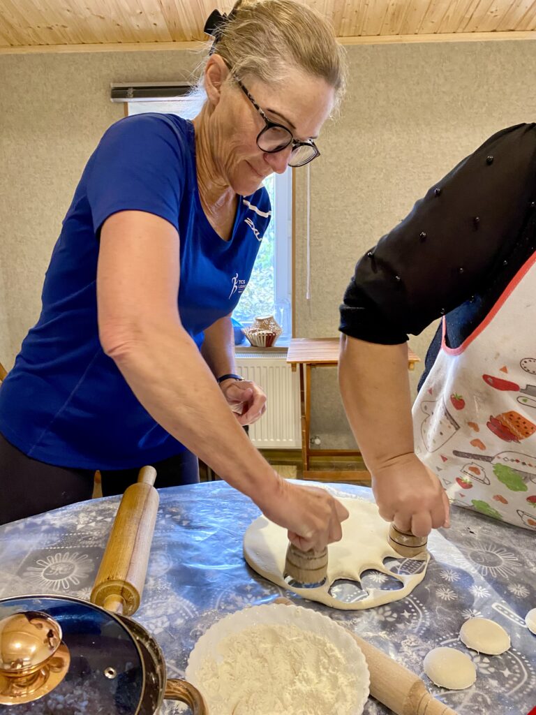 Vi fortsatte upp till köket där mamma Ira gav oss en praktisk lektion i tillagning av Georgiens nationalrätt khinkali, alltså dumplings, som vi fyllde med kryddstark köttfärs.
