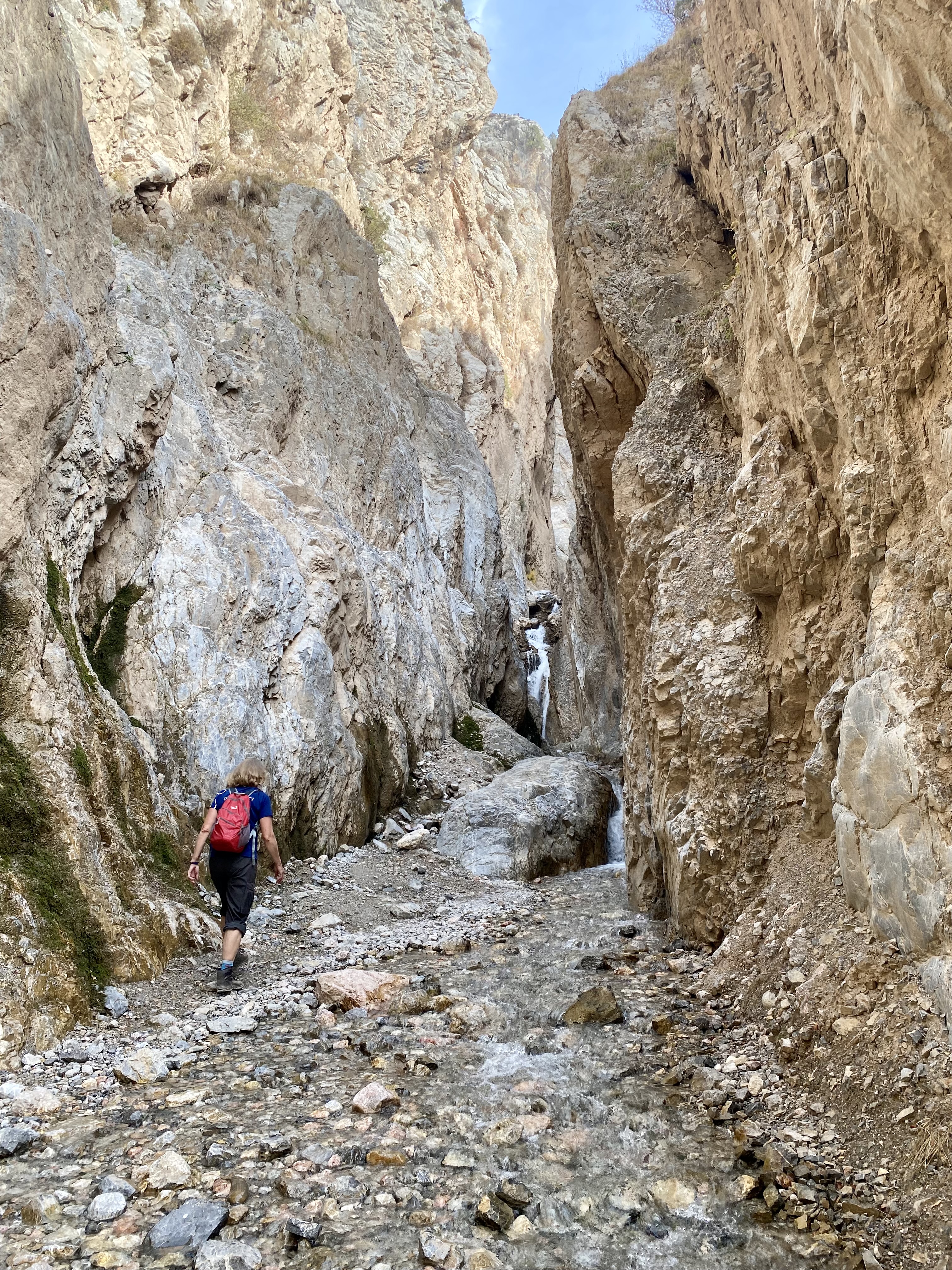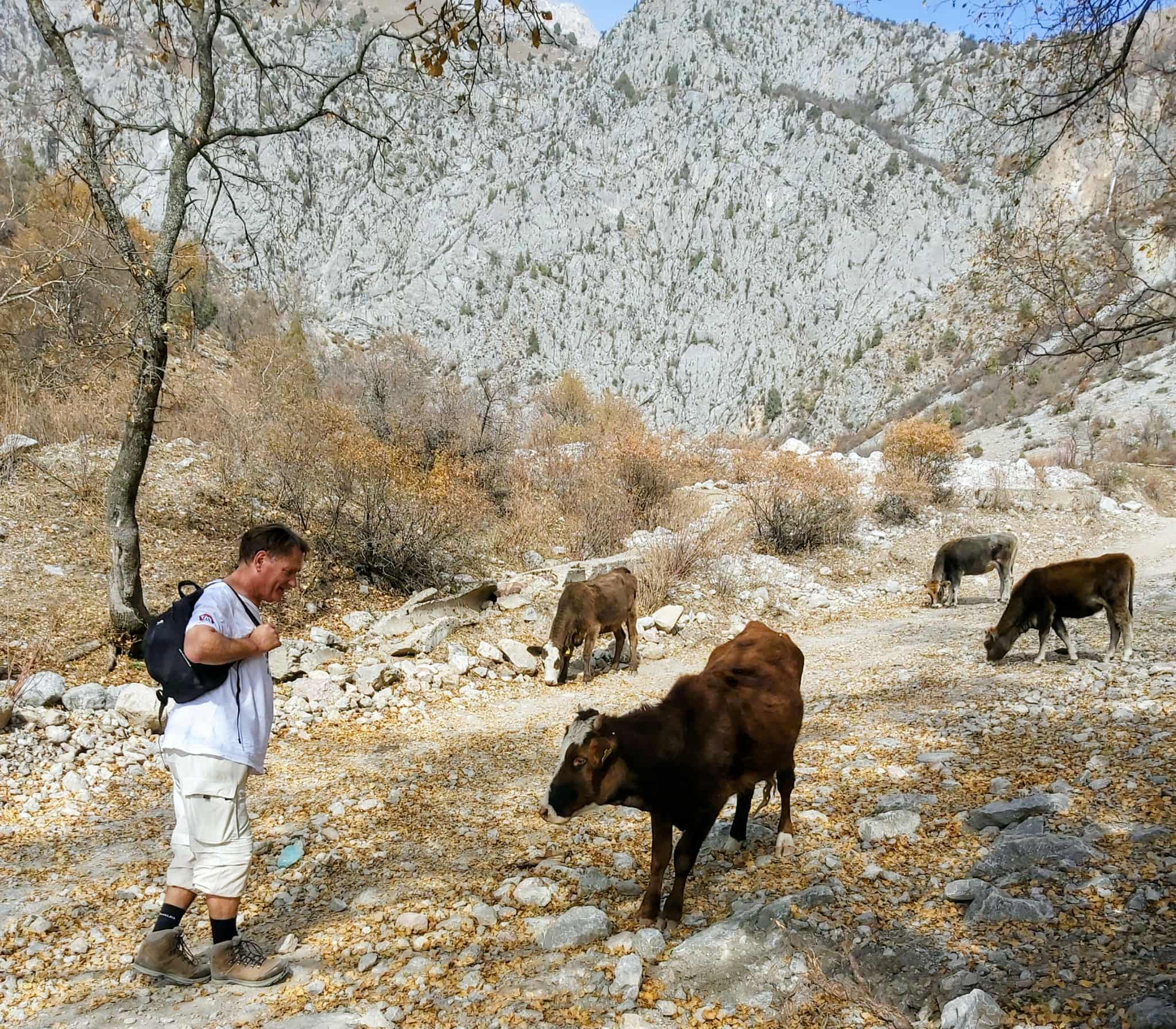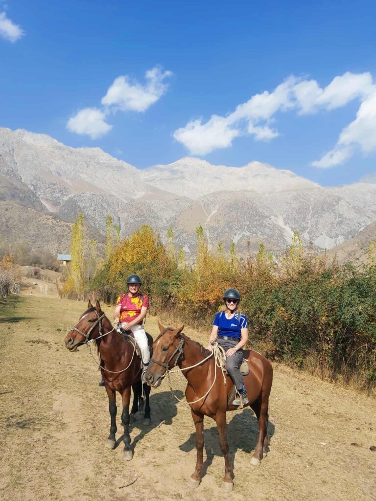 Tredje dagen i lilla byn fick vi kliva upp i sadlarna igen. Jag med starka stoet Toro, som tålmodigt skrittade uppför branterna till +2.000 meters jöjd. Svindlande vackert, och så rofyllt. Vår guide, Daler, infödd Arslanbobare, berättade om byn, om skolgång, skatter och den stora viljan att hjälpa till i lokalsamhället, helt utan betalning. Efter 5 timmar på hästryggen känns det reååält i kroppen.